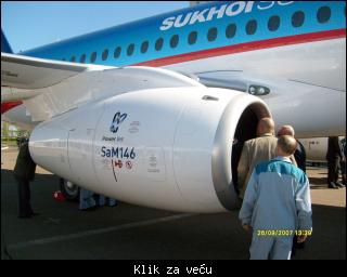 Po starom receptu sa čuvenog "boinga 737", dva turboventilatorska mlazna motora su smeštena ispod krila raspona 27,8 metara. I motori su deo multinacionalnog dogovora, proizvode ih francuska Snecma i ruski Saturn, ujedinjeni u Powerjet. Oznaka motora je SaM146, a snaga je deklarisana na 62kN do 71kN. Kontrola rada motora je u potpunosti digitalna, a rezervoari goriva imaju kapacitet od 13.135 litara.