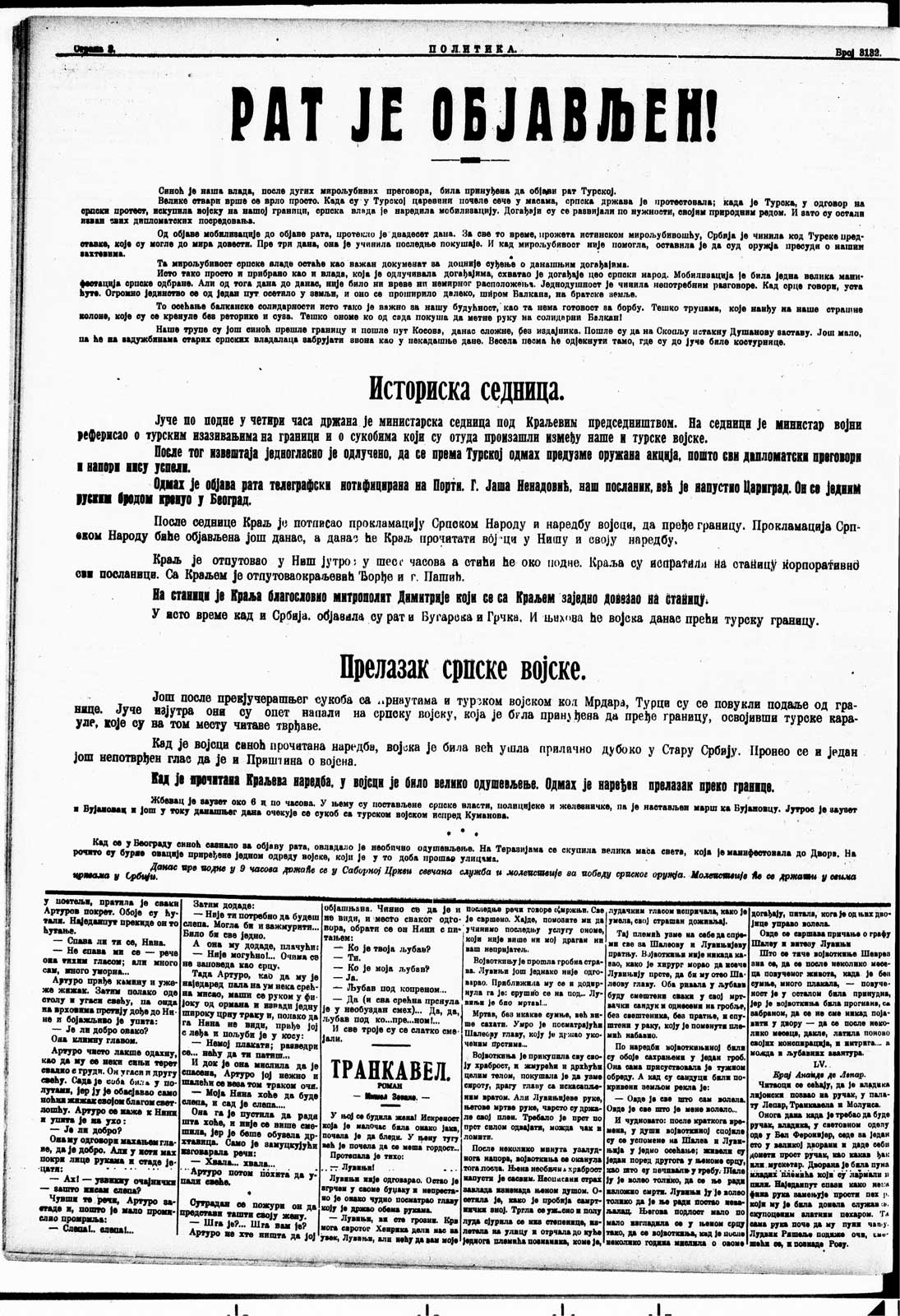 Како и да е, по сите тајни дипломатски преговори и договори, потпишани сојузи, воени подготовки и слично, на 21 и 22 септември се водат последните преговори меѓу Софија, Белград и Атина за формулирање заедничка нота што сојузниците сакале да ѝ ја испратат на Турција. Дефинитивниот текст на нотата е утврден на 5 октомври 1912 година, и со неа фактички официјално беше најавена Првата балканска војна.