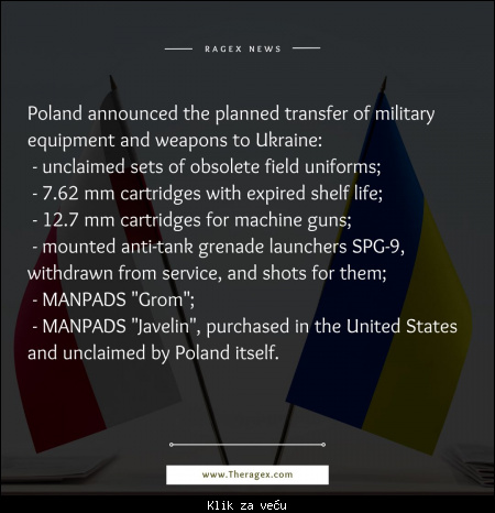 Citat:Poland will transfer man-portable air defense systems (MANPADS), drones and anti-aircraft ammunition to Ukraine, Polish Prime Minister Mateusz Morawiecki said.